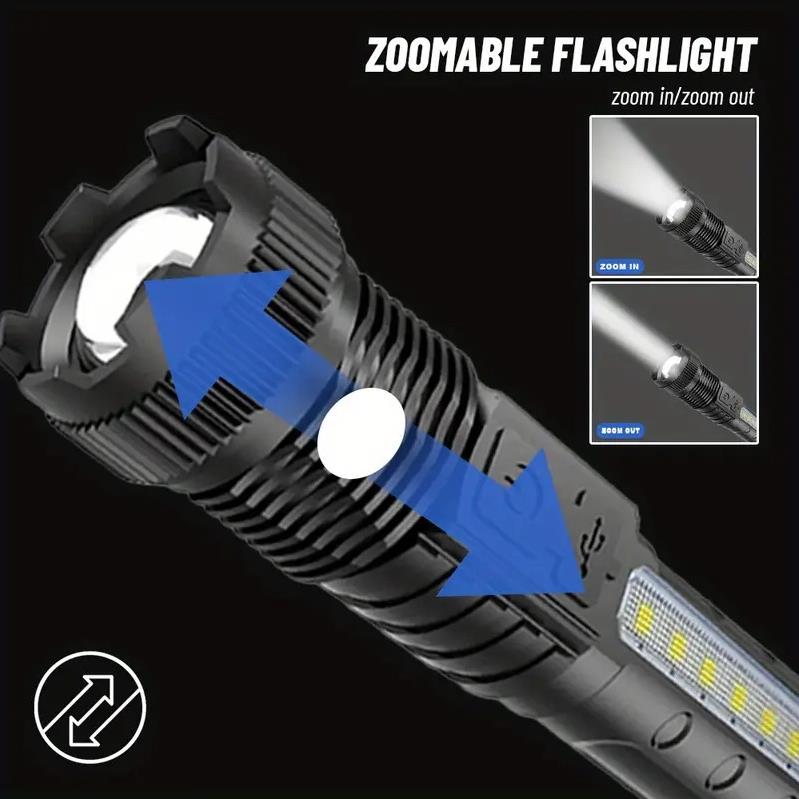 USB Şarj Edilebilir LED El Feneri Mıknatıslı, 3 Modlu, 150-350 Lümen, Yakınlaştırılabilir El Feneri, ABS Malzeme, Şarj Edilebilir Pil ile Acil Durum Çalışma Lambası.